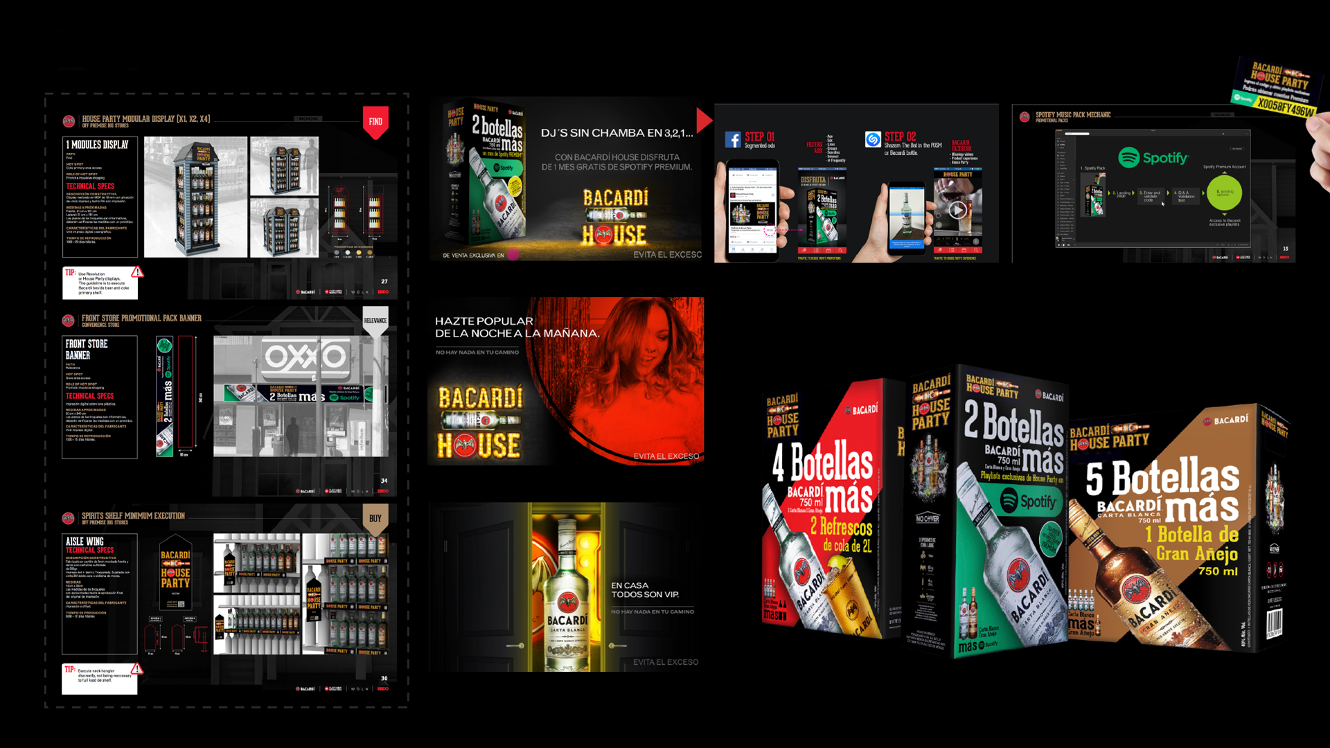 Campaña Shopper Marketing para Bacardí, donde se desarrollo un concepto creativo para aplicar en diferentes materiales como: Poster, cenefas, exhibidores, redes sociales y sitio web.