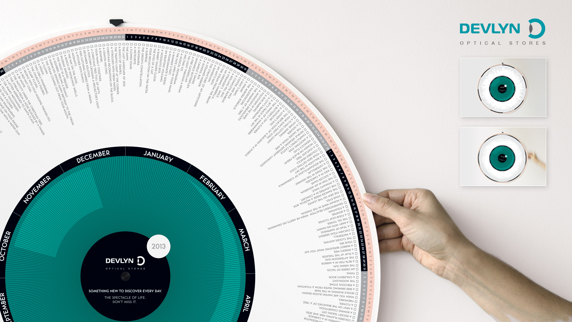 Calendario. Diseño alineado con la premisa “la vida es un espectáculo”, un calendario que sugiere cada día una opción, no sólo para observary disfrutar, sino también para reflexionar.