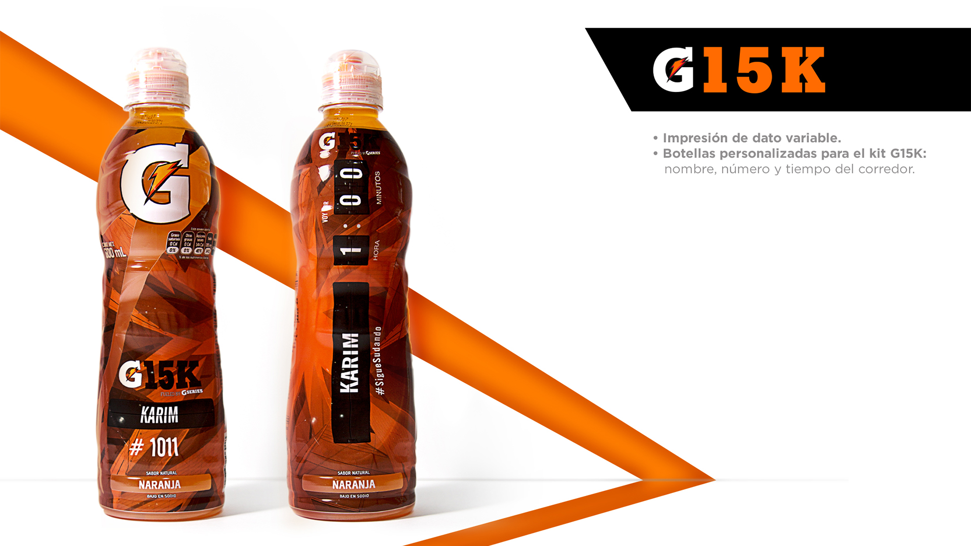 Desarrollo de etiqueta para la Carrera Gatorade 15 K con dato variable para poder perzonalizar, Nombre y tiempo de cada participante.